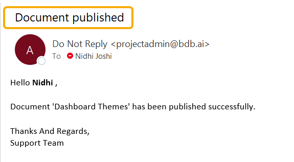 The selected user receives an email from the BDB Support Team after the selected Dashboard gets published to the user.