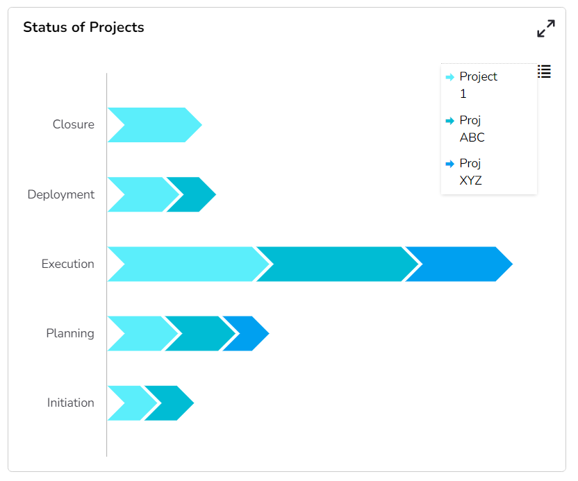 Combination of phases defines a project lifecycle. The chevron provides users in-detail information of the each phase involved in the project and its status.