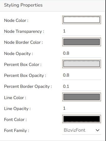 The user can change the Box color, font color, Node color, Percentage box value color and line color.