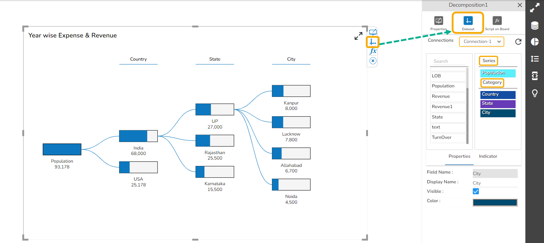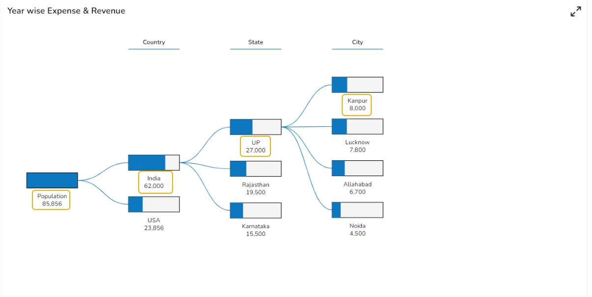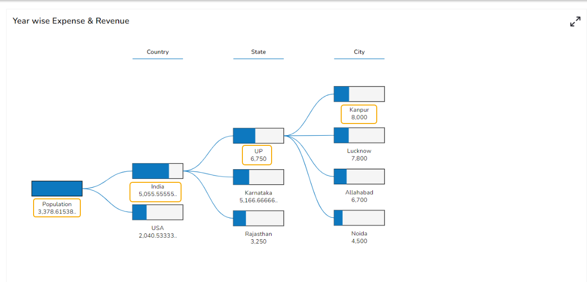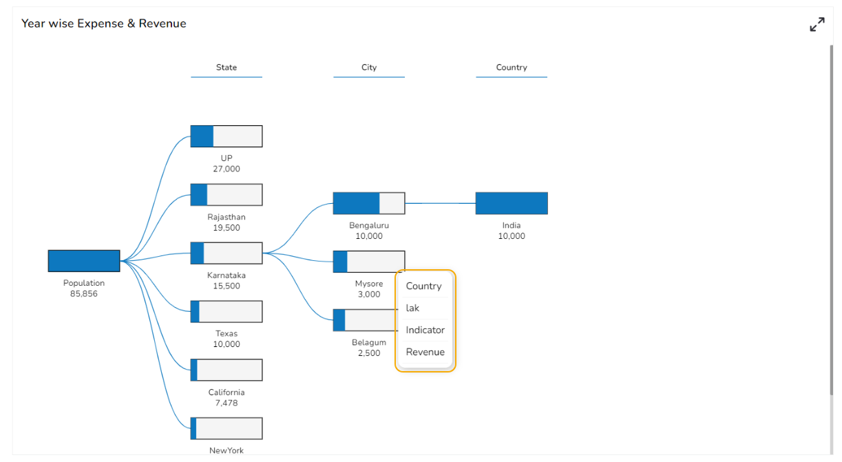 Consider the Series field as Population and visualize population data as per various categories such as Country, State, and City in a hierarchical order.