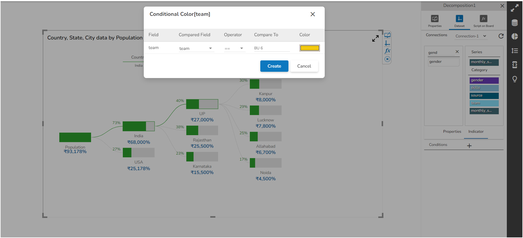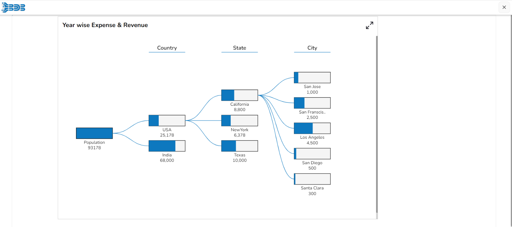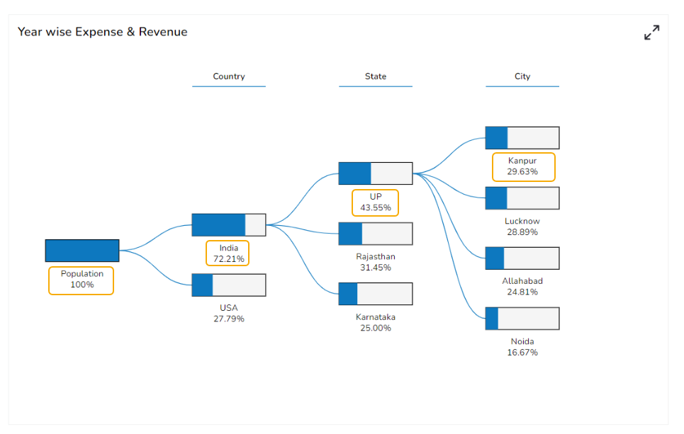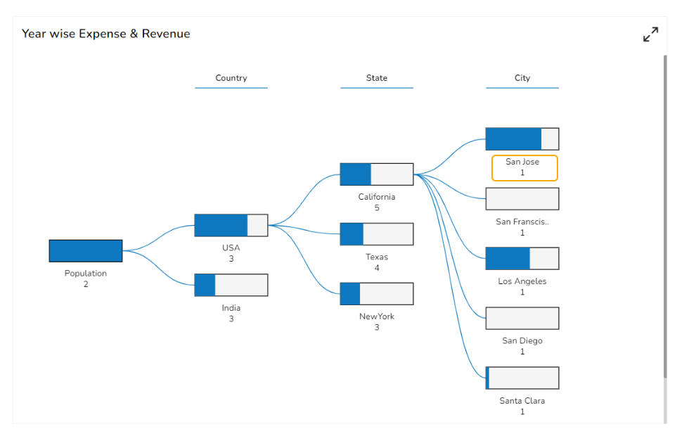 Consider the Series field as Population and visualize population data as per various categories such as Country, State, and City in a hierarchical order.