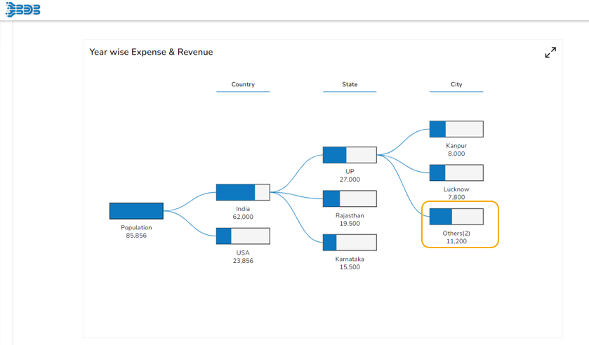 The set value for the Maximum Node field is 10 so if a particular node contains more than 10 children nodes, only 9 children nodes with comparatively more values get displayed as visible nodes, and the remaining children nodes with less value are shown as others.