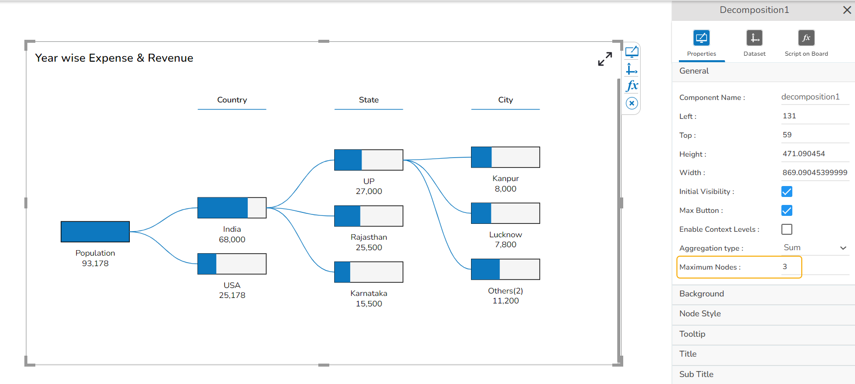 The number of Maximum Nodes gets limited to 3 and the nodes with less values get clubbed as Others as displayed in the below-given image: