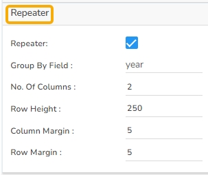 This Properties will work when we have a category field and that category value should display in different chart. For Example: If we have a Year for each year, it will generate a different chart.