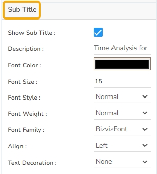 The user can enable the subtitle to display the second title. The user can change the Name, Font color, size, style for the subtitle.