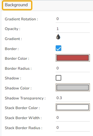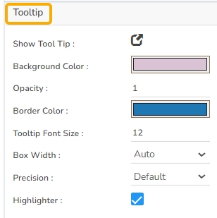 The user can change the background color of the chart, can get the border for the chart and can change the border color, can get the reflection of the chart by enabling the shadow option can also change the color and increase & decrease the transparency of the shadow.