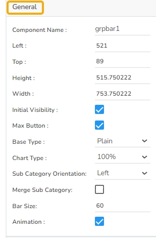 The user can change the height, width, top, left, chart type, column type & Line form. In this case, we have changed the chart type to 100 & base type to plain.