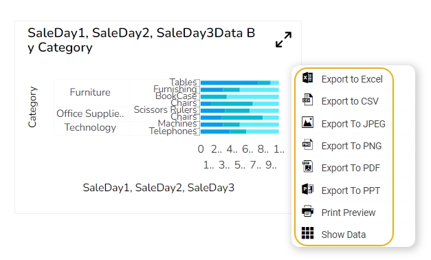 The user can enable the Enable Context Menu from the preview section to download the reports in different formats.