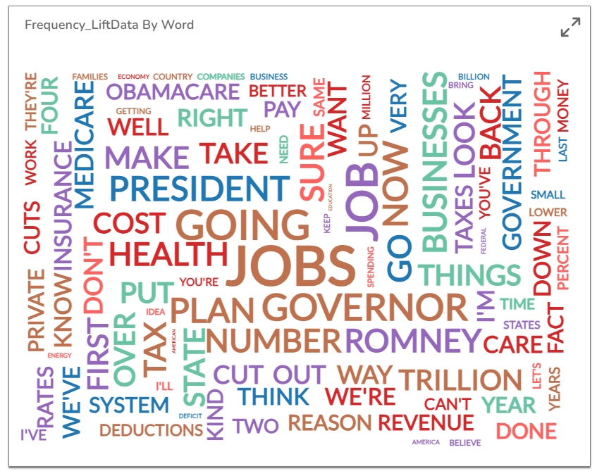 Word Cloud is a visual representation of text data where the font size of a word depicts the frequency of this word in a set of text data. Even though Word clouds are not a perfect tool for data analysis and business data visualizations, they definitely have their place in info graphics. Word clouds can also reveal patterns in your responses that may guide future analysis.