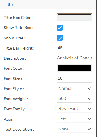 The user can enable the subtitle to display the second title. The user can change the Name, Font color, size, style for the subtitle.