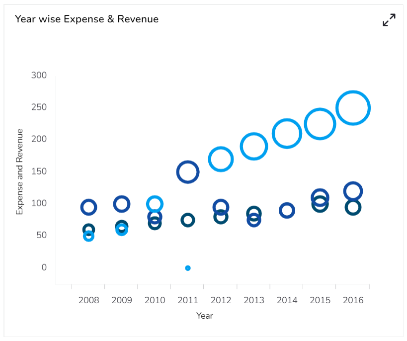 &#x20;If the data has three series each containing values, then the user can use a Bubble chart for better representation. Generally, the sizes of the Bubble are determined by the values.