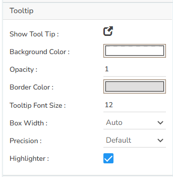 * The user can set and modify background color, border color, Tooltip font related properties using these properties fields.     &#x20;