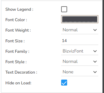 The user can also select a Text Decoration option for the Legend. Put a check mark in the Hide on Load checkbox to hide the Legend while loading the chart.