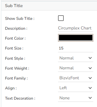 These properties fields will help to enable or disable the Subtitle, Provide description if it has been enabled and set the font related properties for the same.