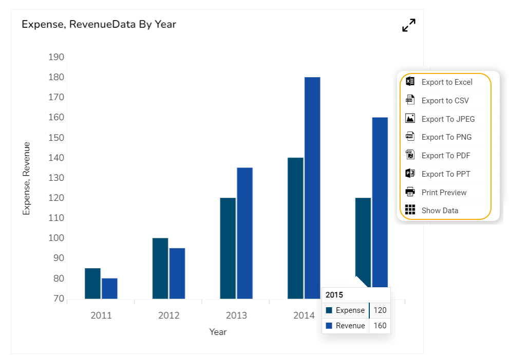 * By enabling the[ ***Enable Context Menu***](#user-content-fn-1)[^1] the user gets a context menu with various export options to download the report in the ***Preview*** mode.&#x20;