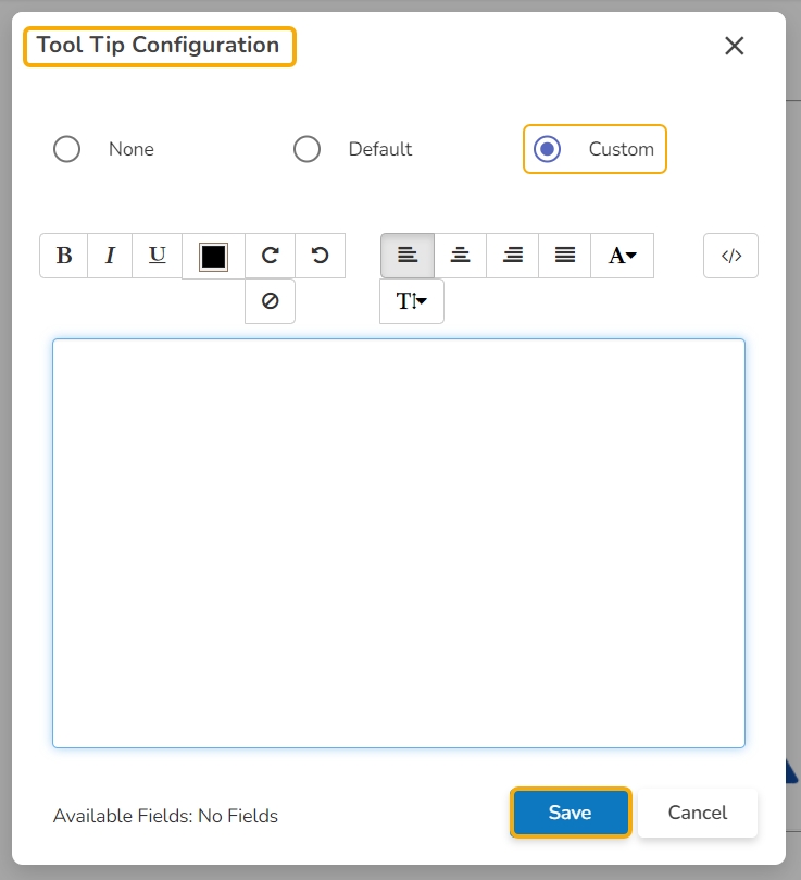 Select any Tool Tip option. The supported Tool Tip is None, Default, Custom.