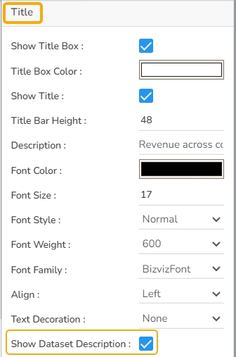 These properties fields will help to enable or disable the Subtitle, Provide description if it has been enabled and set the font related properties for the same.