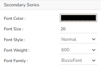 The user can set and modify the Font Color, Font Size, Font Style, Font Weight, and Font Family ac. for the secondary category (second series field) through this section.