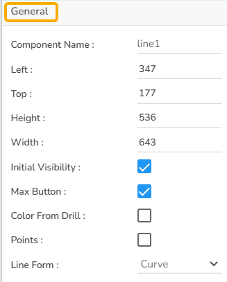 The user can change the height, width, top, left, chart type, column type & Line form. In this case, we have changed the Line type to curve, segment, etc.