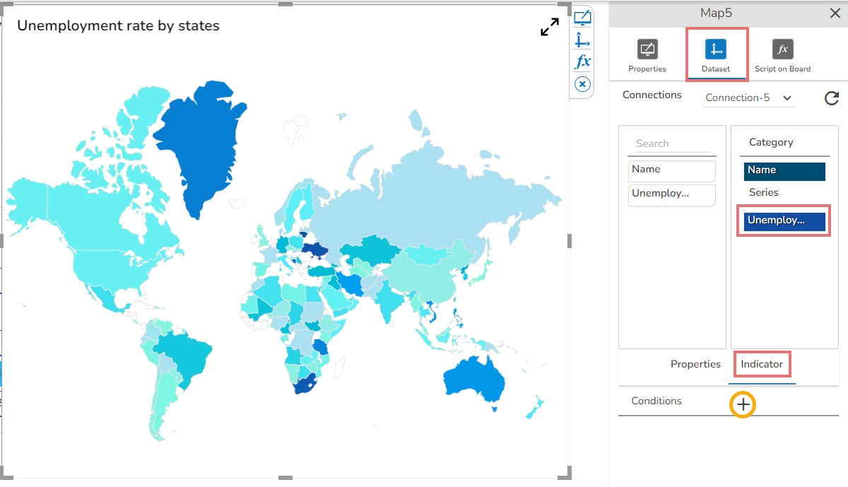 Use the Name column as Category field, and Unemployment-rate column as Series to plot data.
