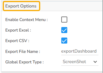 The Export Options also helps to provide Export File Name. The user can also select an option for Global Export Type.