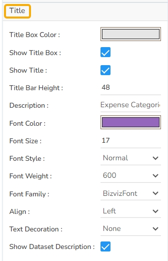 The user can change Title Name, Font color, size, style, etc.