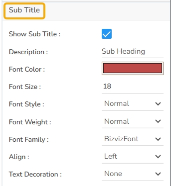 The user can enable the subtitle if we have any second title and also, we can change the Name, Font color, size, style, etc.