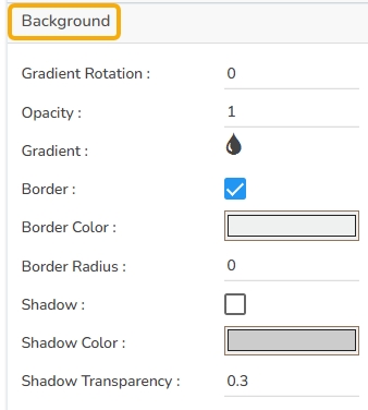 The user can change the background color of the chart, get the border for the chart, and change the border color. Get the reflection of the chart by enabling the shadow option and also change the color, increase or decrease the transparency of the shadow.