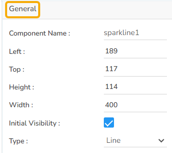 The user can change the height, width, top, left. If initial visibility is unchecked, then the chart won’t be visible at the first preview. Also, possible to select the type of chart between Line, Bar, and Tristate.