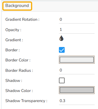 The user can change the background color of the chart, can get the border for the chart, and can change the border color, can get the reflection of the chart by enabling the shadow option can also change the color and increase & decrease the transparency of the shadow.
