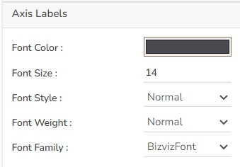 The user can change the category label properties as well as the axis label values. It is able to change the font color, size, style, weight, and font family.