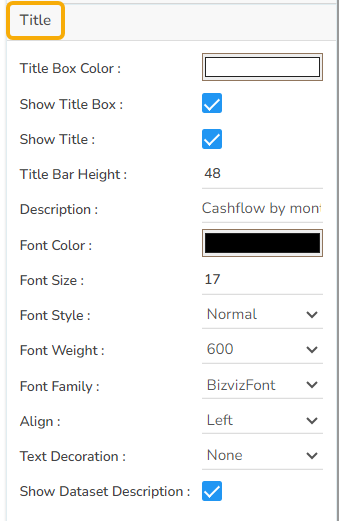 The user can change Title Name, Font color, font size, font style, etc.