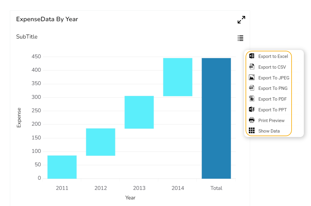 The user can enable the Enable Context Menu from the preview section to download the reports in different formats.