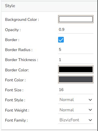 The user can set the background color and font color as well as font style-weight-family etc. in this section.