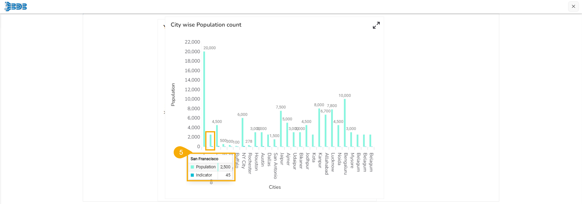 *<mark style="color:green;">Please Note:</mark> The **Hide Data Label**  field has been provided to hide the data label when the values are not needed to be shown (i.e., as the value 2 is hidden in the given walk-through).*