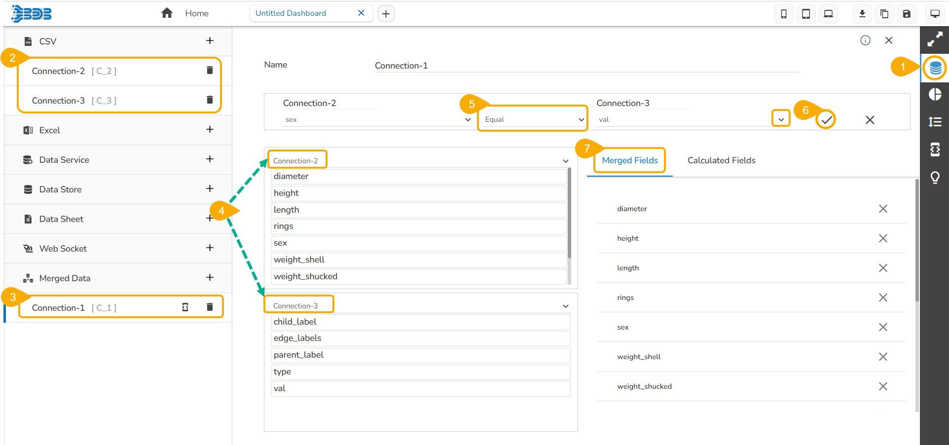 Create a connection under the Merged Data connector. (E.g., Connection-3).