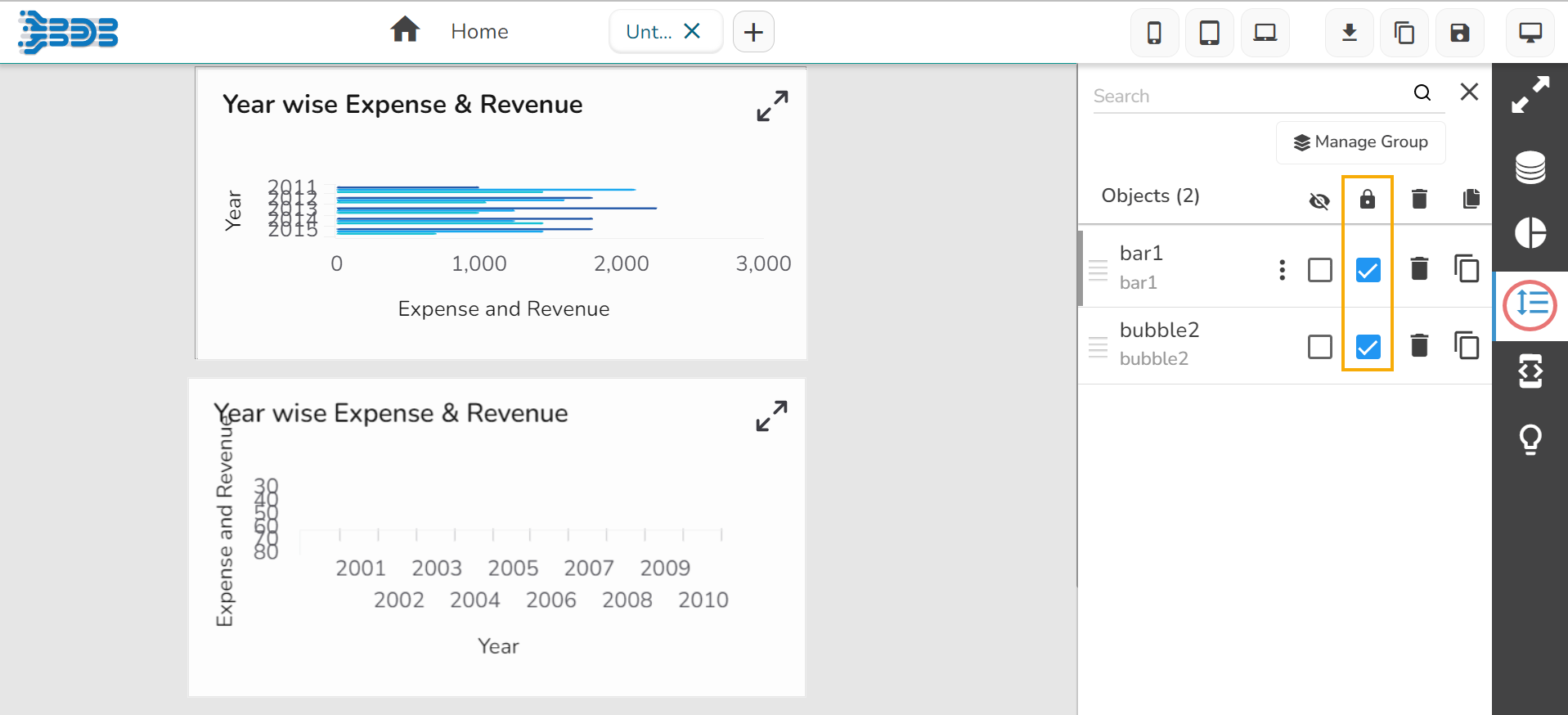 * By clicking on this icon![](https://859511478-files.gitbook.io/~/files/v0/b/gitbook-x-prod.appspot.com/o/spaces%2FGDmsjfjJBNqow7Fo97cO%2Fuploads%2FD4UrkLWgWsFrbuxeVg6D%2Fimage.png?alt=media\&token=1ac39edc-eef4-47bc-a4d7-192e8b831ccc), all the components which are present in the dashboard will be locked, i.e., means components cannot be moved from one place to another.