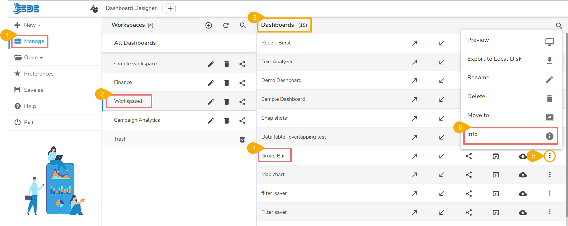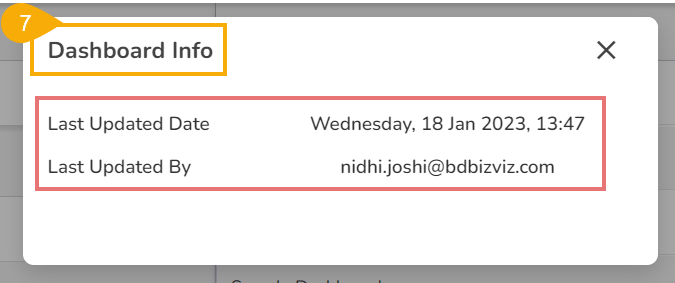 * The Dashboard Info window opens displaying the related information such as ***Last Updated Date*** and ***Last Updated By.***