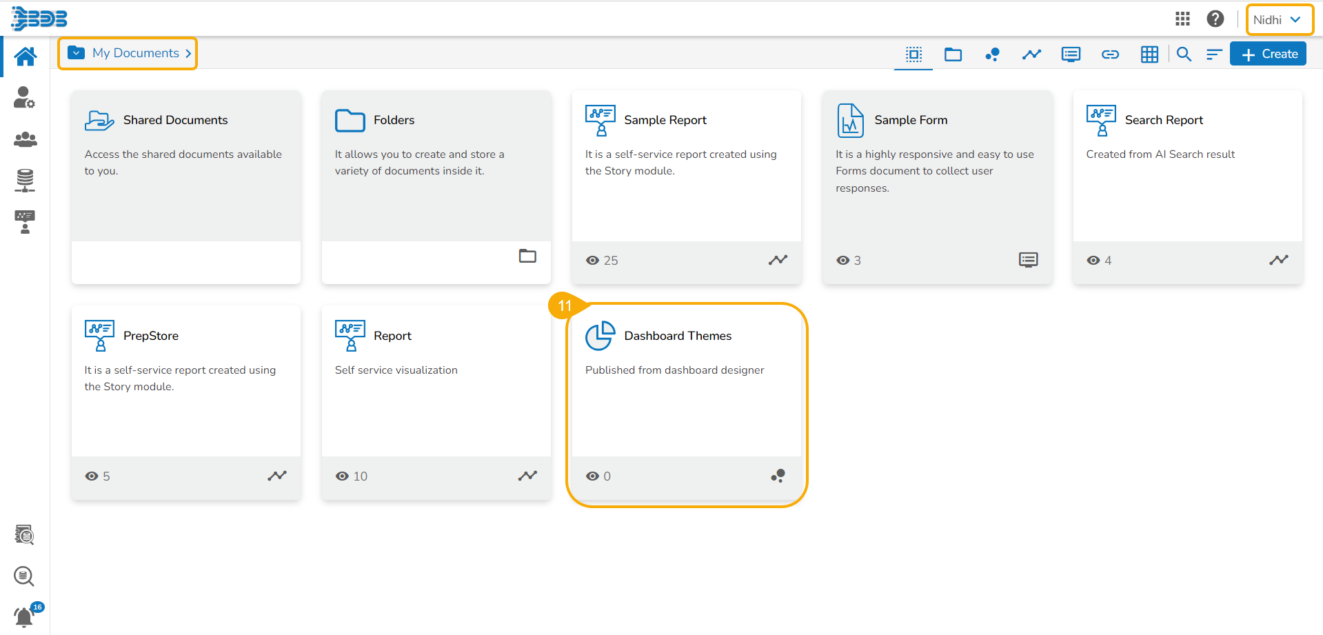Each published Dashboard gets a set of options to be performed on it. Refer to Options for a Published Dashboard section provided under the Document Options to get more details on it.