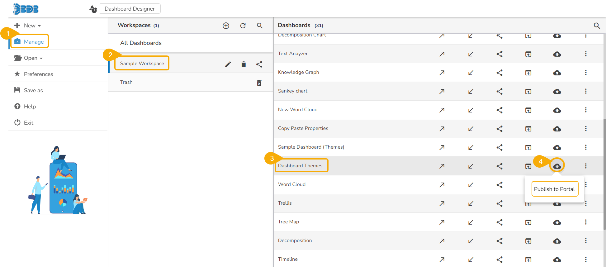 The below-given illustration will help you to understand how to publish a Dashboard.
