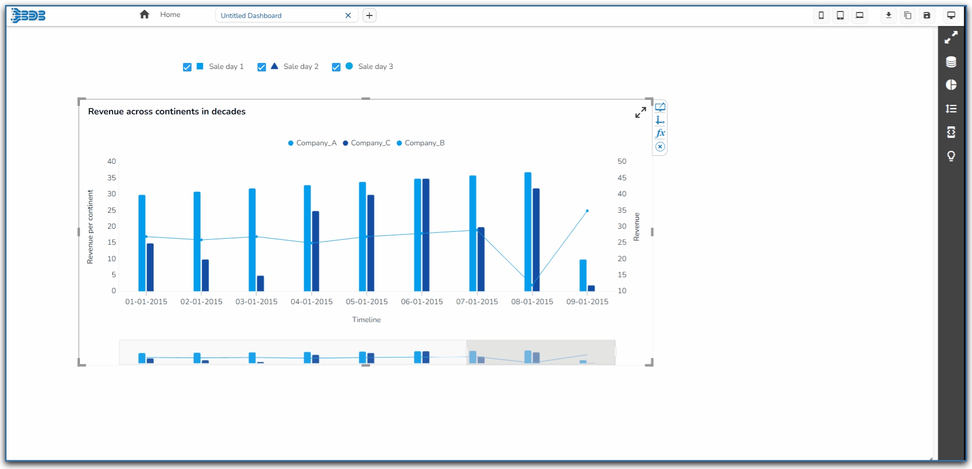 Timeline chart variants by changing the Properties