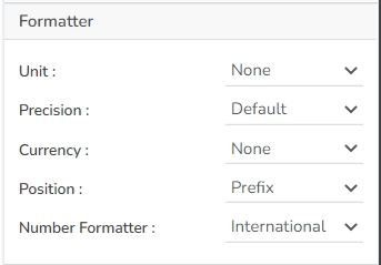 Position: Determine the position of the formatted value (e.g., before or after the number).