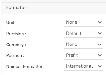 Position: Determine the position of the formatted value (e.g., before or after the number).