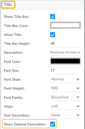 Please Note: By enabling the Show Dataset Description option the Title will get added from the mapped dataset.