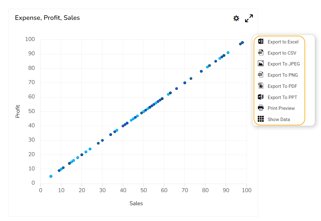Export CSV: Export the chart data into a CSV file format (.csv).