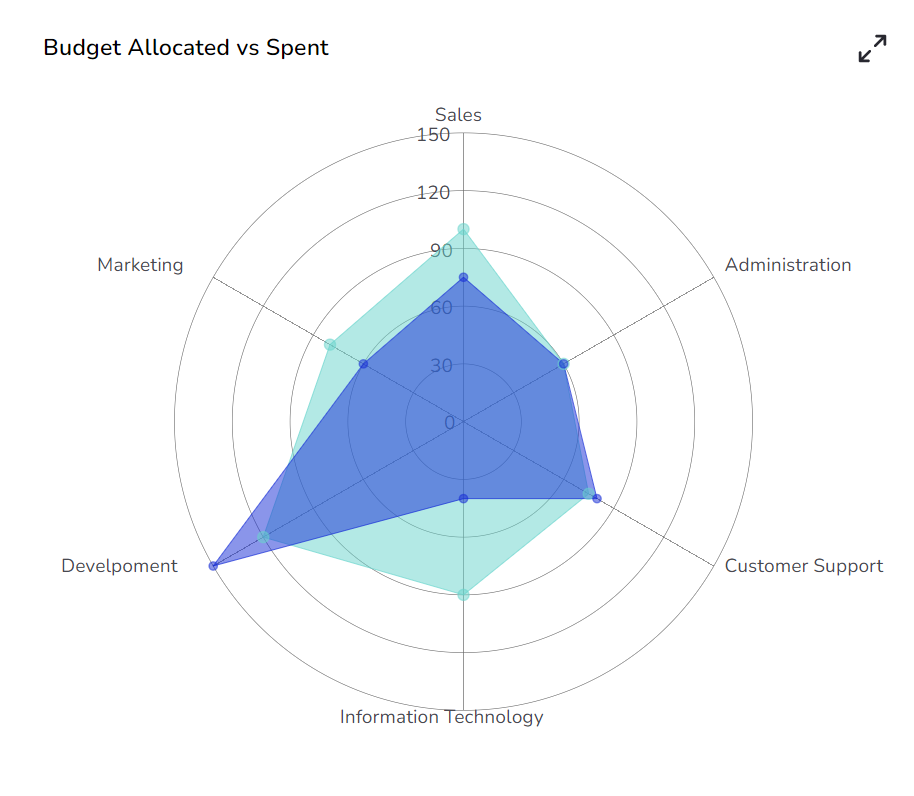 Select the Department column as a Category field and Allocated_Budget as well as Actual_Spending columns as Series fields to plot the data.