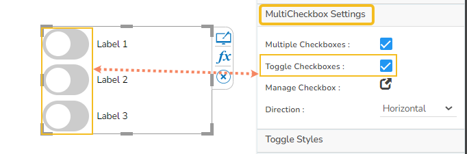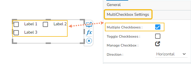Multiple Checkboxes: Enable the Multiple Checkboxes option from the MultiCheckbox Settings property to add multiple checkboxes with labels.