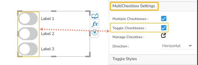 Direction: Select an option from the drop-down menu to choose the direction of the checkboxes. It can be Horizontal or Vertical.