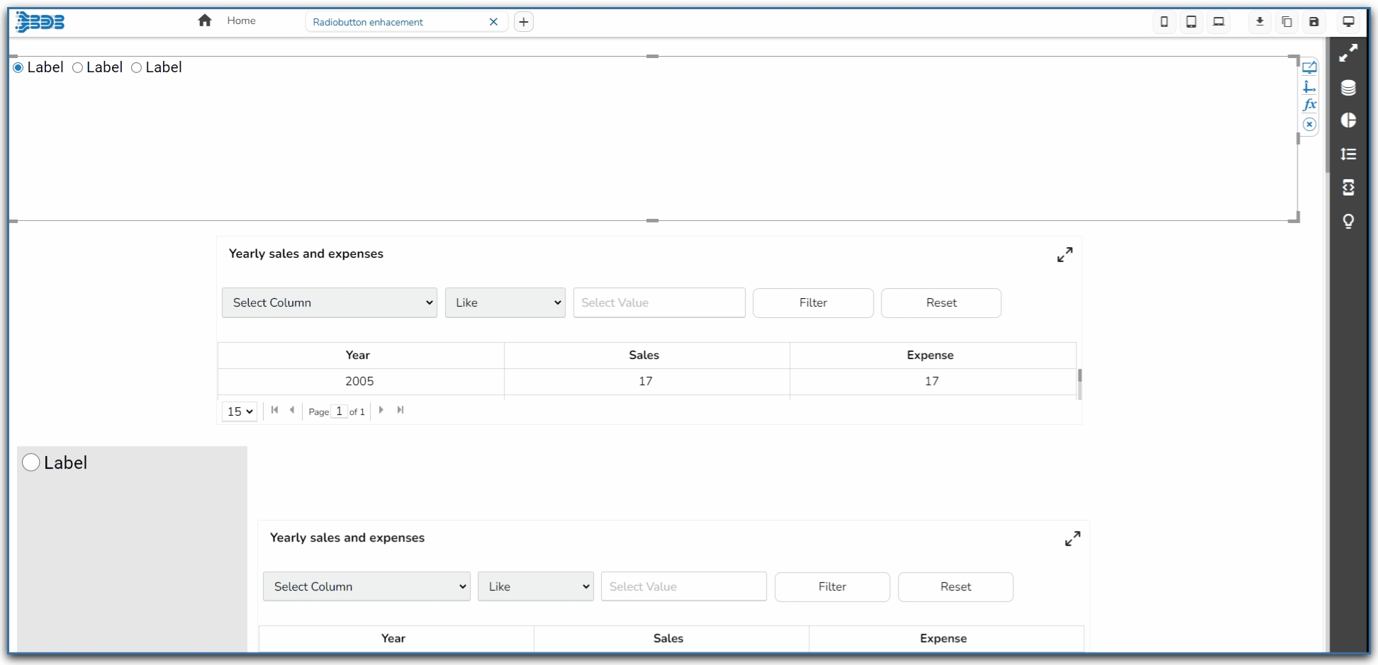 Check out the below given walk-through on how to use the Radio Button filter component in Designer module.