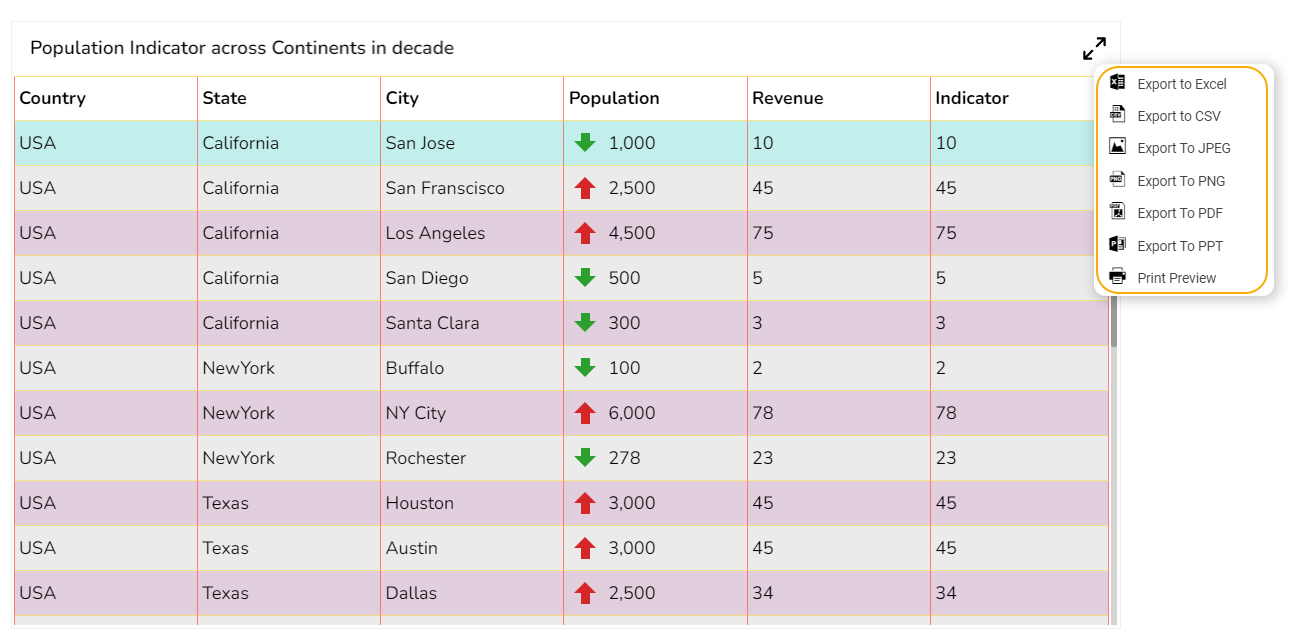 The user can get the Export Context Menu from the preview mode to download the reports in different export formats.